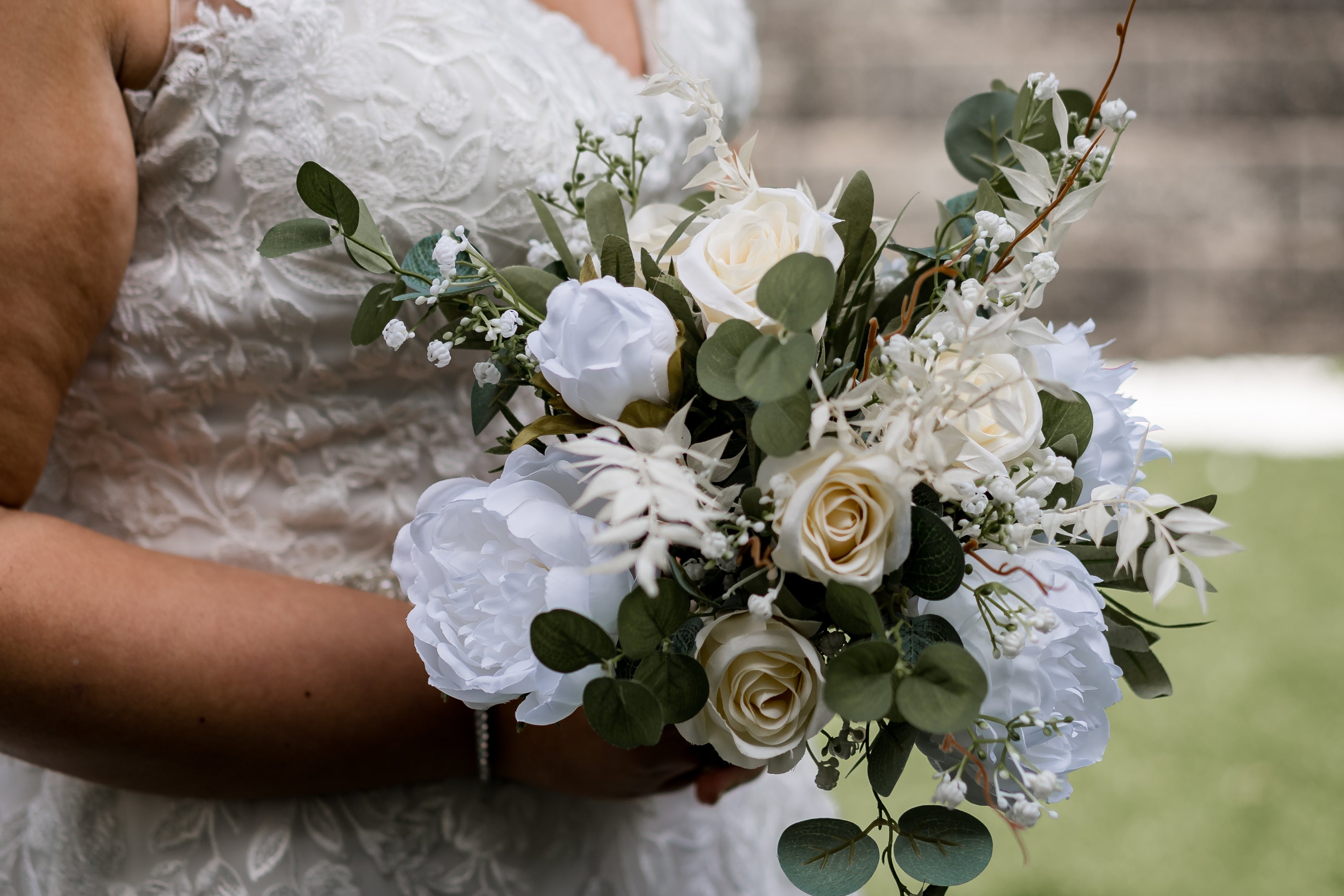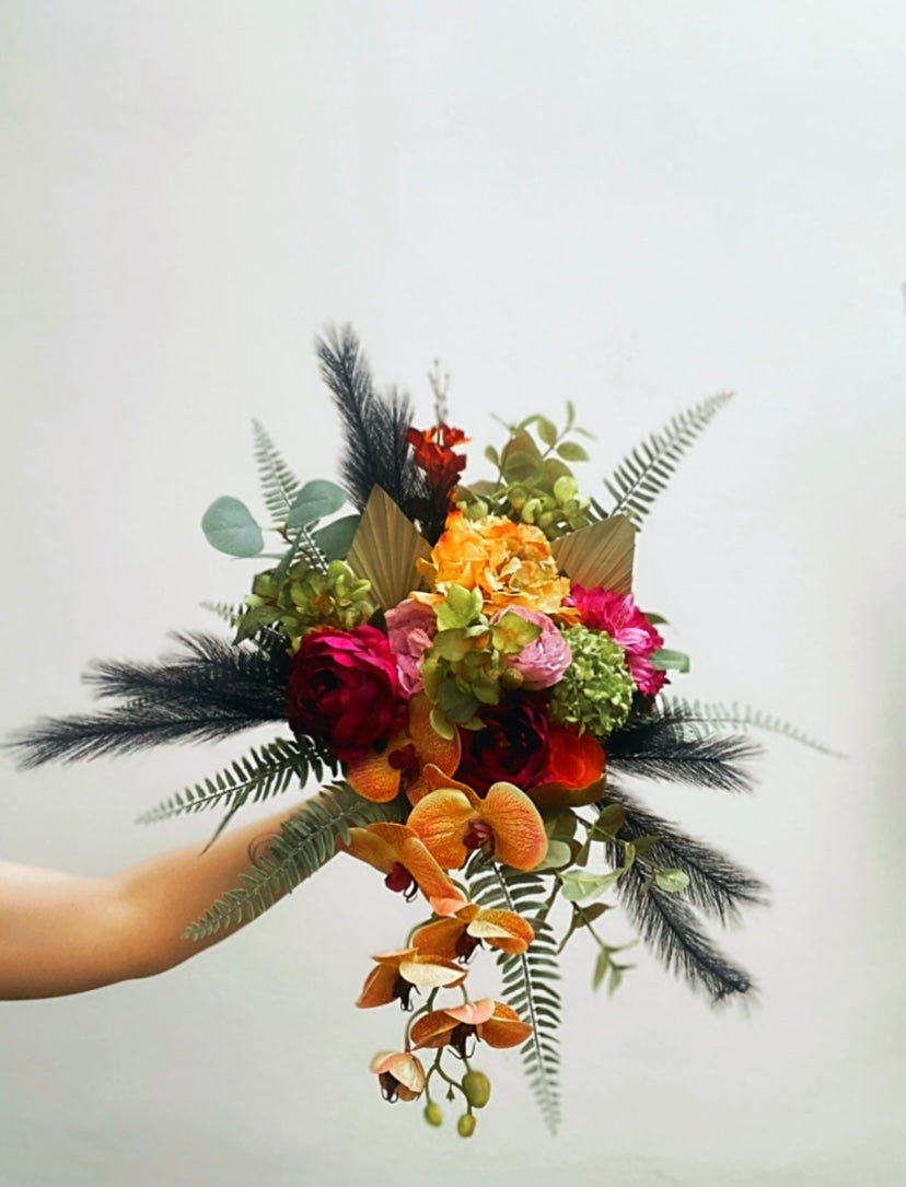 Imagine holding a bouquet thatβs as timeless and radiant as your love story. This stunning bridal bouquet, crafted entirely of high-quality faux flowers, features a perfect blend of lush peonies, soft roses, and delicate hydrangeas, (just to name a few) all beautifully arranged to create an elegant yet whimsical feel. Each bloom is meticulously handpicked to capture the essence of natureβs finest florals, offering rich textures and vibrant colors that last throughout the dayβand beyond.